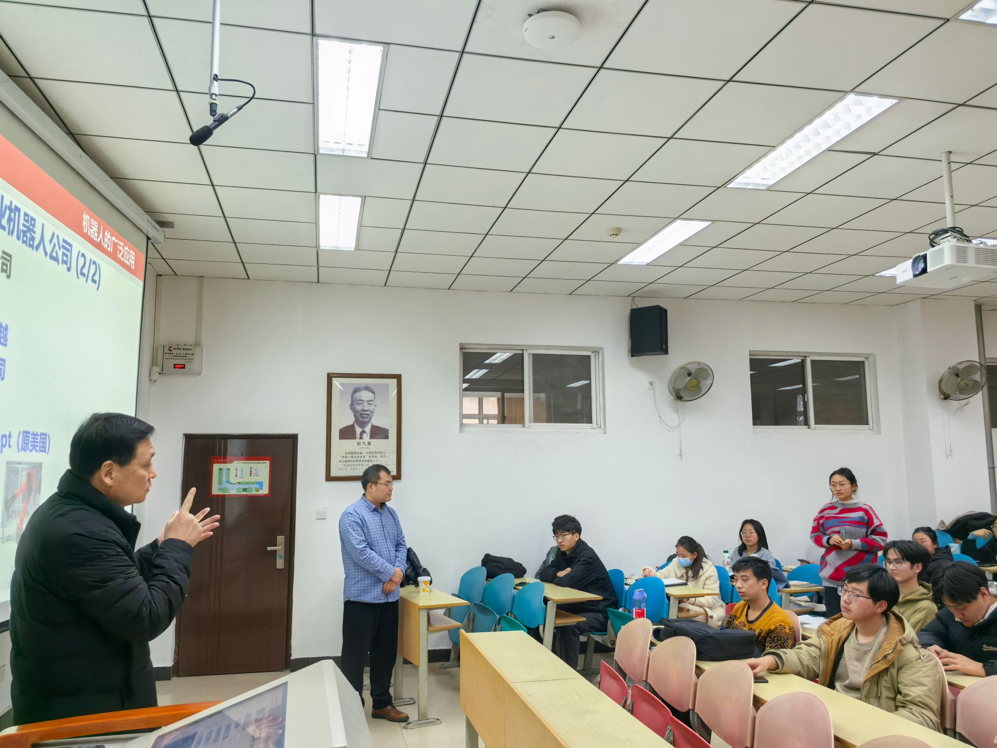 訾斌教授还向同学们提供了国内外机器人研究领域的网站、期刊和书籍等学习资源,从科研机构、高校和公司三个维度展开介绍机器人的最新发展动态。尤其特别强调,从事机器人研究工作,对于员工个人就业而言具有就业面广的优势。最后,分别从机器人的历史,机器人的定义、分类和应用,机器人的发展等方面作了详细介绍。