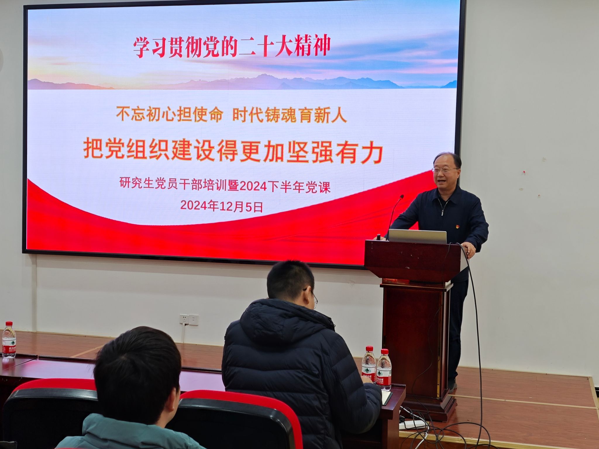 (通讯员 张硕岩 赵宇)为深入学习贯彻党的二十大、二十届三中全会及全国教育大会精神,进一步加强基层党组织建设,强化提升研究生党员干部党建理论水平与党务工作能力,12月5日下午,6776永利集团在北校区主楼三区237报告厅召开党委书记讲党课暨员工党员干部培训会。公司党委书记梁玮、正处级组织员李文兴、党建与员工工作办公室主任赵宇和研究生党支部全体支委参加了此次会议,会议由李文兴主持。