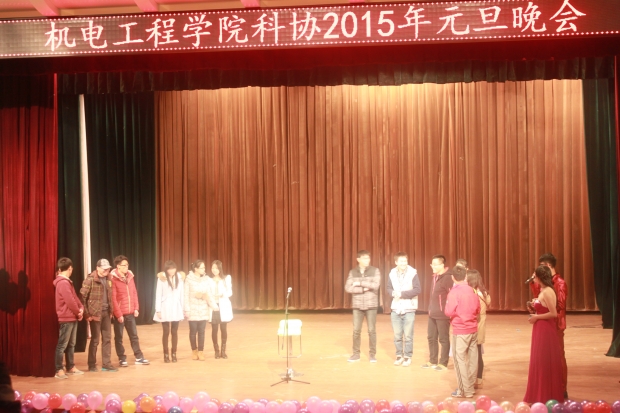 晚7点整,在阵阵欢呼声和热烈的掌声中元旦晚会正式拉开大幕。首先亮相的开场舞让大家眼前一亮,随后的话剧表演唐伯虎点秋香、爱情公寓1111赢得了在场观众的阵阵掌声,值得一提的是在小品《科普好声音》中,主持人张著的精彩主持颇有浙江卫视当家主持华少的风采,让现场观众连连喝彩。在之后进行的游戏环节,科协现任主席刘敏、前主席夏代怡等都上台参加了游戏环节,上台参与游戏的各位同学都玩得十分尽兴。在随后表演的歌曲串烧、吉他弹奏都是精彩纷呈,而话剧《武林外传》更是给了大家一种穿越的感觉,各位表演的同学一身古装再加上完美的表演赢得现场尖叫连连。最终,本次元旦晚会在舞蹈《小苹果》之后画上了圆满的句号。