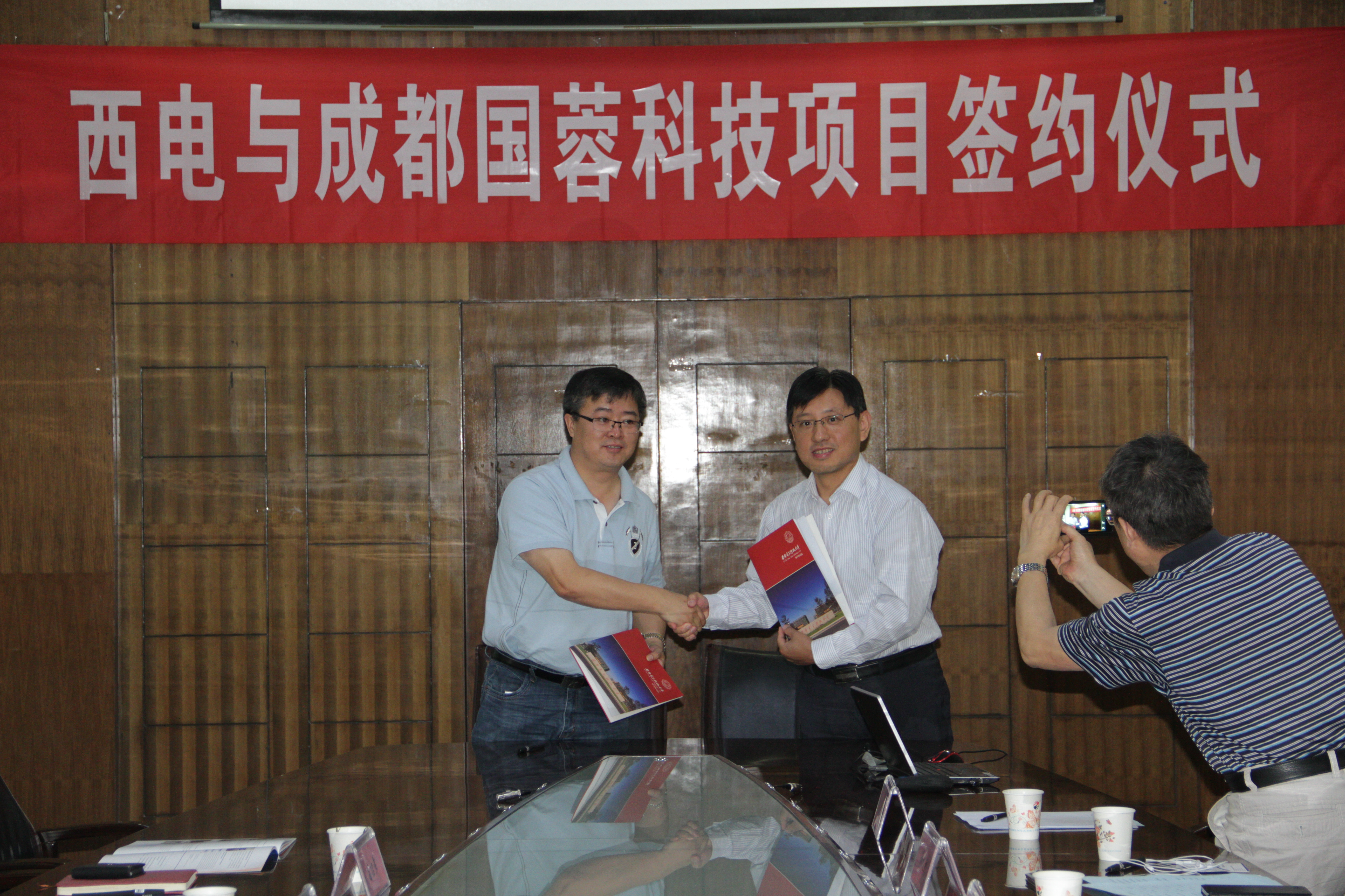 最后,双方还就人才招聘等方面交流了供需意见。黄进副经理代表机电院,张栋副总经理代表成都国蓉科技签署了“太阳能优化器的研制”项目合作协议。