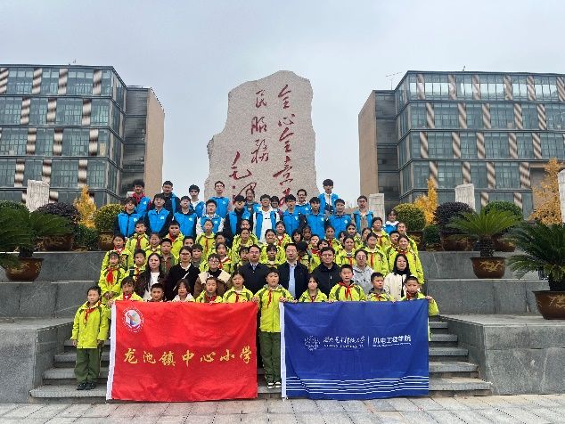 当日上午,蒲城县龙池镇中心小学师生抵达yl6776永利集团官网南校区,公司党委副书记陈武、龙池镇中心小学董事长许新鹏、团委书记王维佳、大二辅导员马雨桐等参加了此次活动。