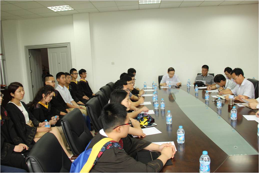 6月26日上午9点,6776永利集团在南校区行政辅楼211会议室召开了2015届本科毕业生座谈会,全体学院领导、系所负责人、毕业班辅导员以及员工代表30余人参加了座谈会,会议由公司党委副书记陈波主持。