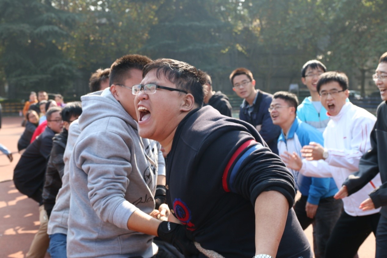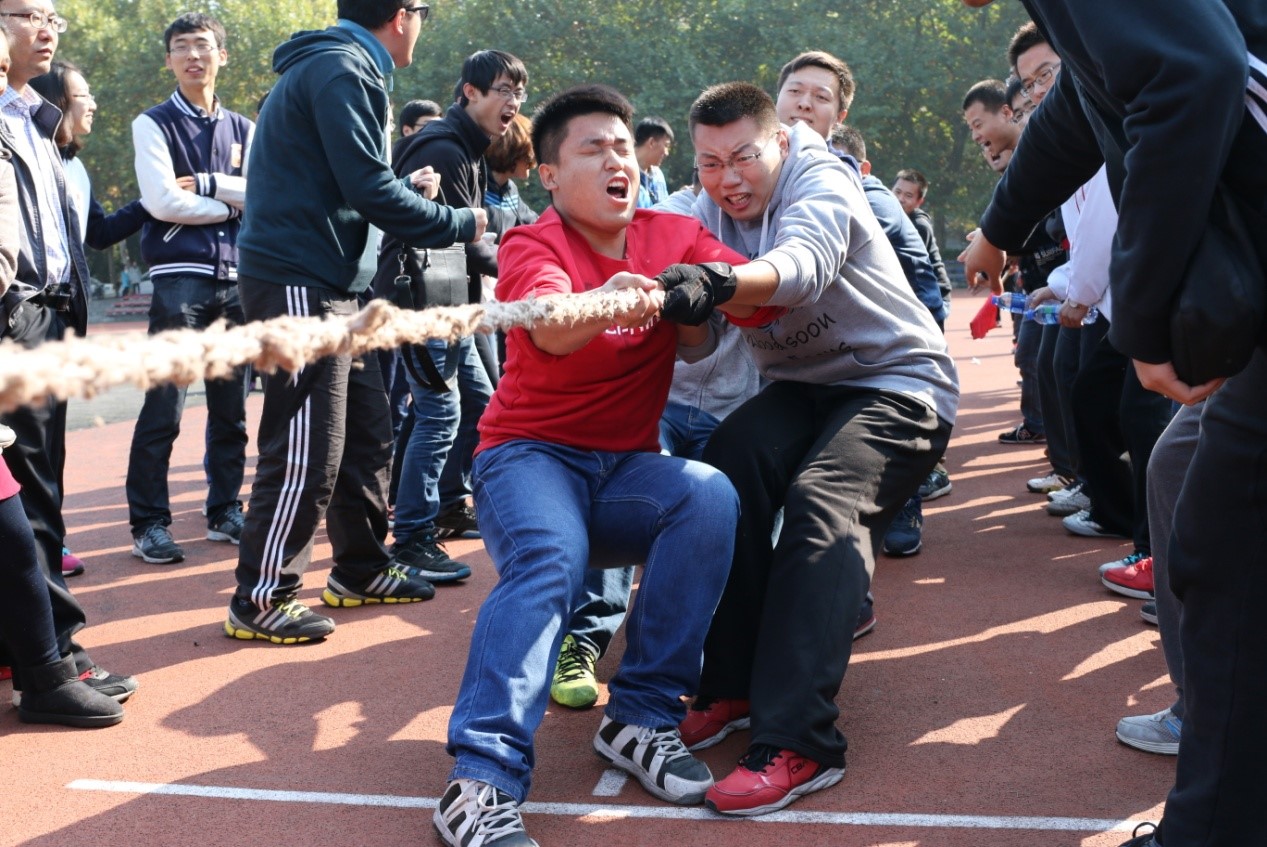 (通讯员 王冬阳)2015年11月1日,秋色宜人,天朗气清,yl6776永利集团官网第三届研究生趣味运动会在老校区操场正式拉开序幕。运动让idea迸发!为促进学院之间的交流,增加各学院研究生之间的互动,本次运动会以院为单位进行比赛。比赛项目共有9项,包含8个竞赛项目(5人持竿蛇形往返接力、20米足球绕杆接力、篮球运球上篮接力、拔河、1分钟个人跳绳团体赛、集体跳大绳、30米绑腿同行比赛、20人×60米穿梭接力)和1个表演项目(相扑擂台表演赛)。