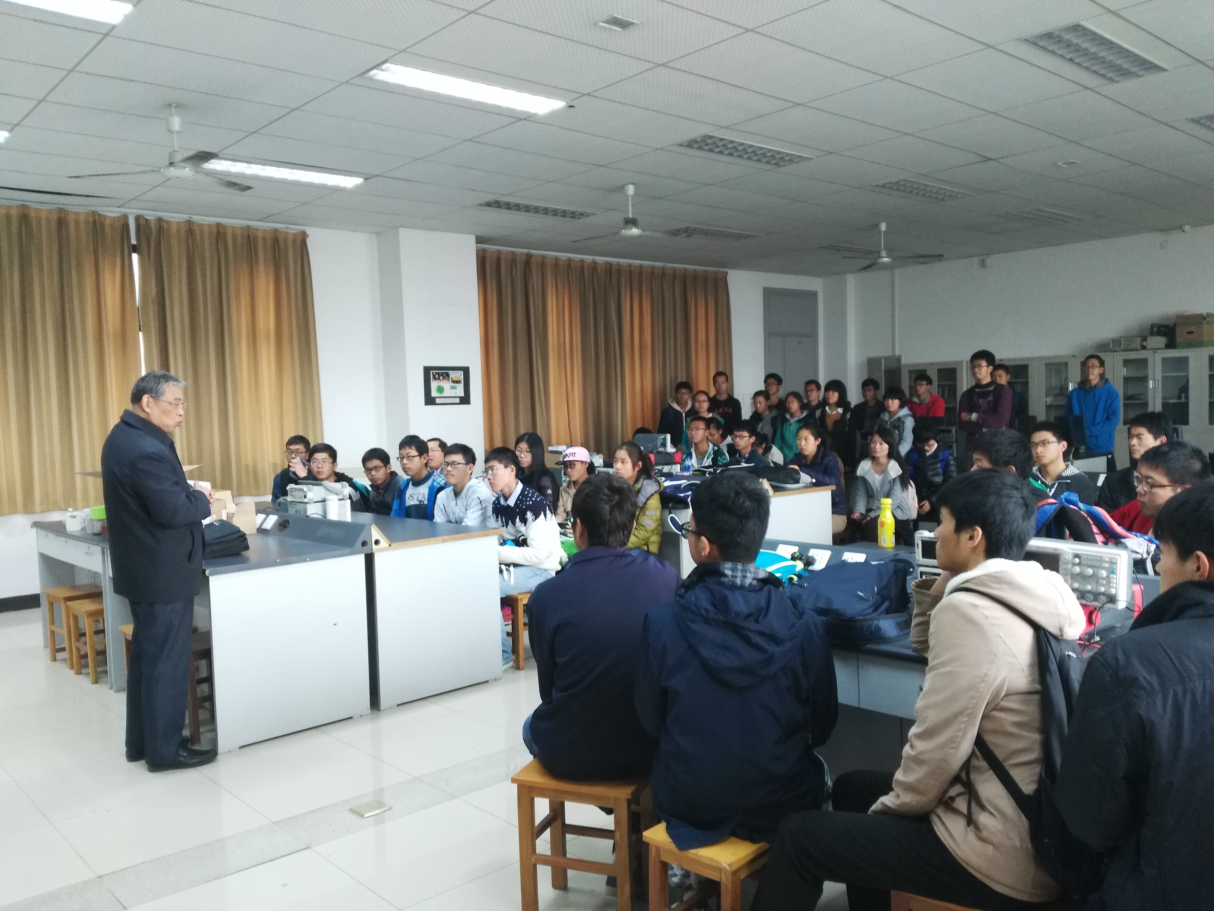 11月7日中午,在南校区F楼老员工学科竞赛基地518创新实验室,举行了由6776永利集团测控技术与仪器专业各年级科技实践小组共同组建的“测控技术与仪器专业老员工科技实践团队”成立仪式。该团队以测控技术与仪器专业在学科竞赛中取得的优异成绩的同学为骨干,以大一、大二和大三各年级班科技实践小组为成员,以提高员工综合素质和科技实践能力为主要目标,旨在能够更好推进素质教育和工程教育,提高员工的培养质量,为我国的测量控制与仪器仪表领域培养更多的优秀人才。6776永利集团测控工程与仪器系主任赵建教授和院办主任崔传贞老师参加了成立仪式。