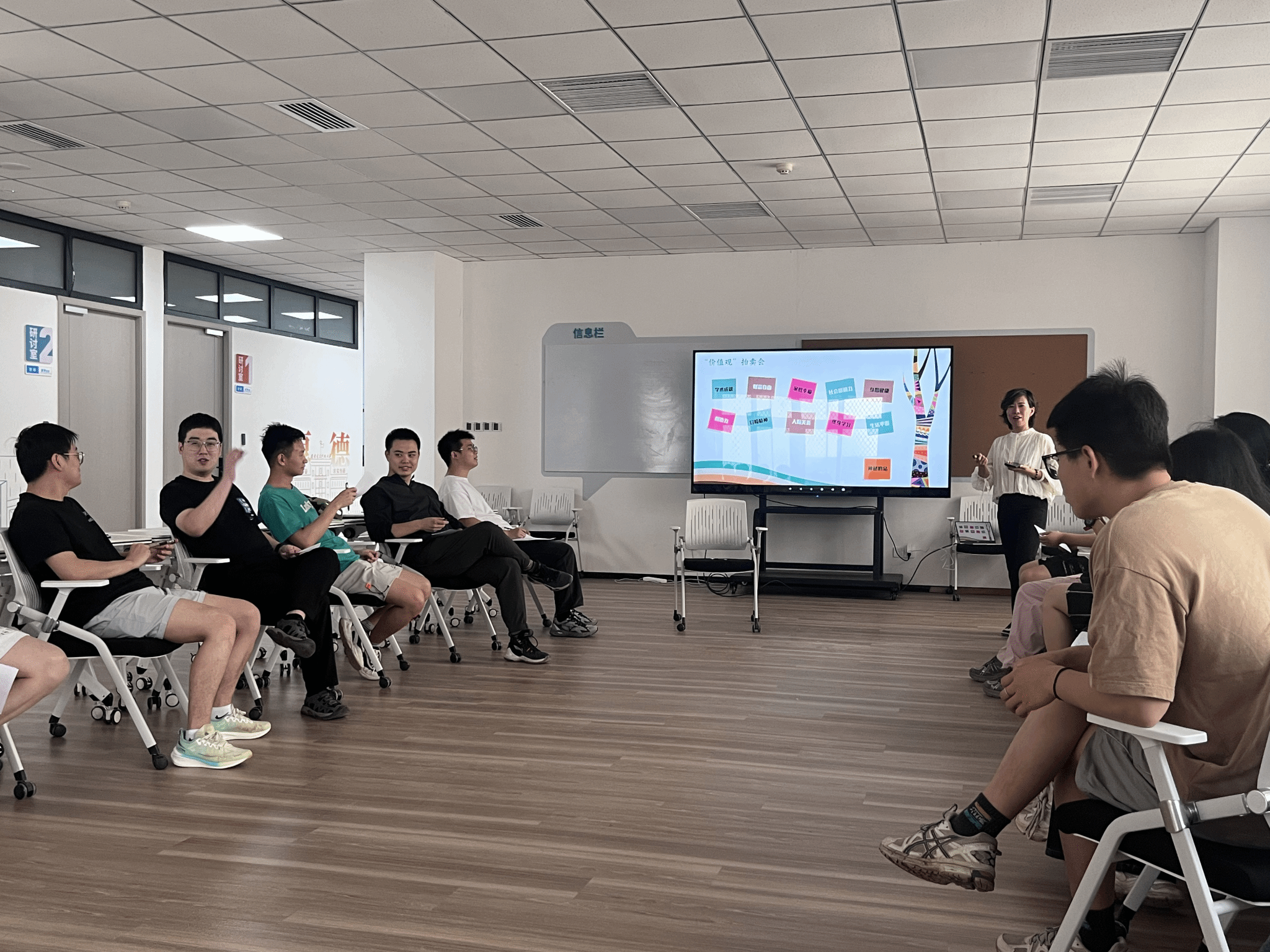 在特色环节“拍卖会游戏”中,杨姗老师引导参与者通过虚拟货币竞拍“身体健康”、“家庭幸福”等象征性标志。该环节采用非竞争性互动机制,要求员工在有限资源下进行动态价值评估,促使研究生直面内心真实诉求。