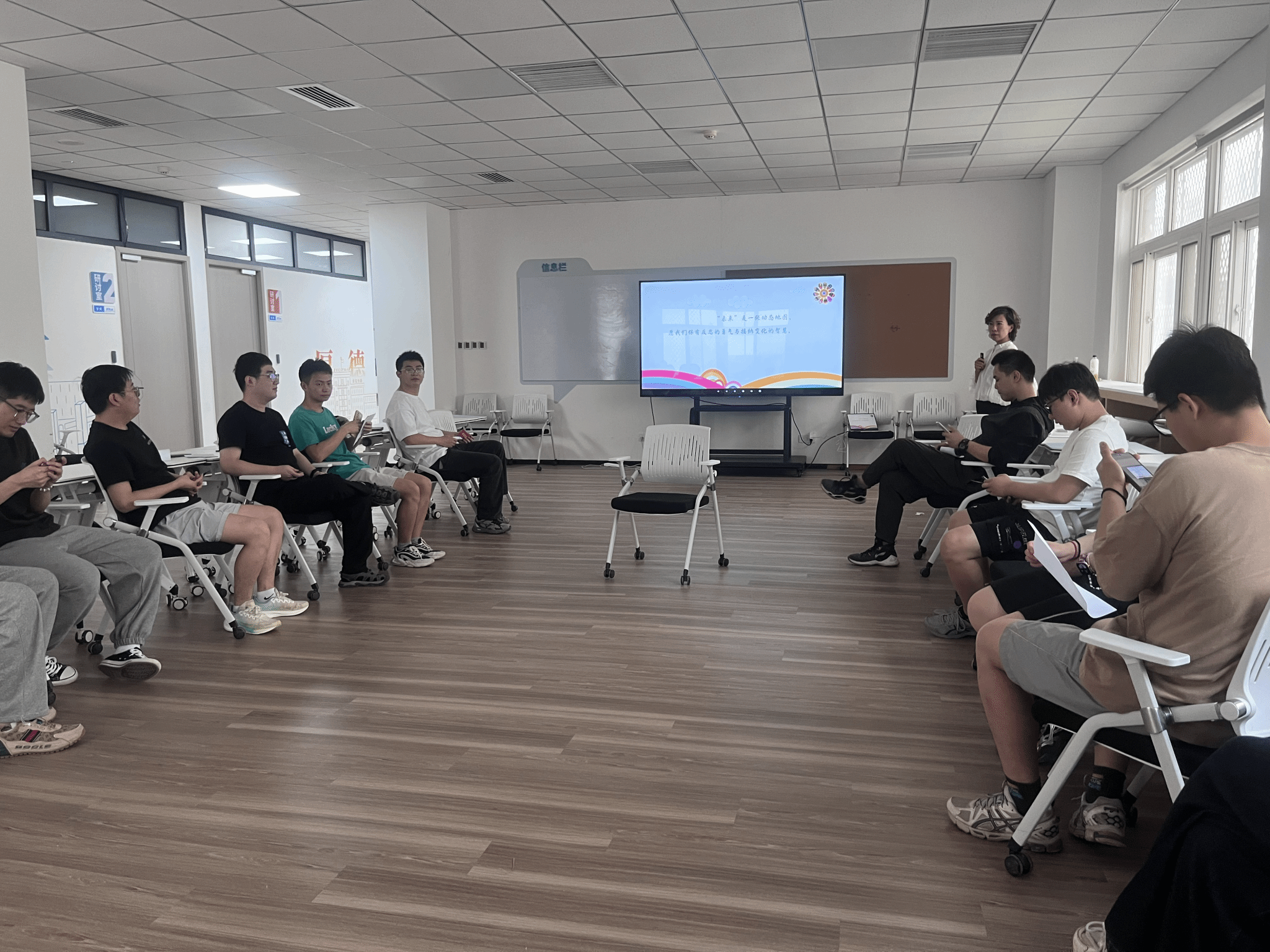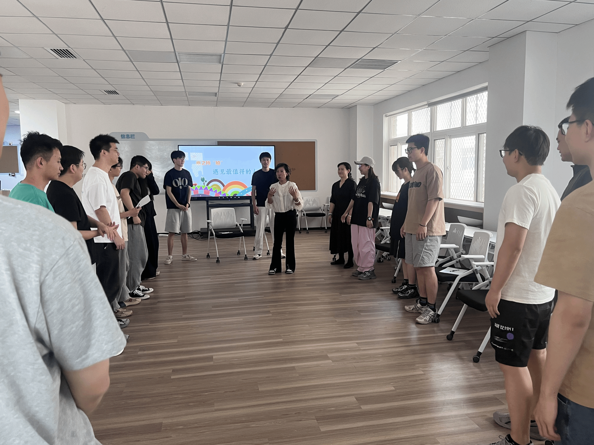 活动中,杨姗老师通过“朋友串门”、“做自己不敢想的事”等互动环节,巧妙化解现场紧张氛围,帮助员工在轻松体验中建立群体认同感。通过角色扮演与情景互动,同学们逐步敞开心扉,以更具参与性的方式深化自我认知,并在团队协作中实现情感共鸣与成长赋能。