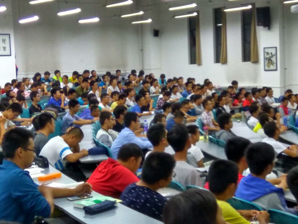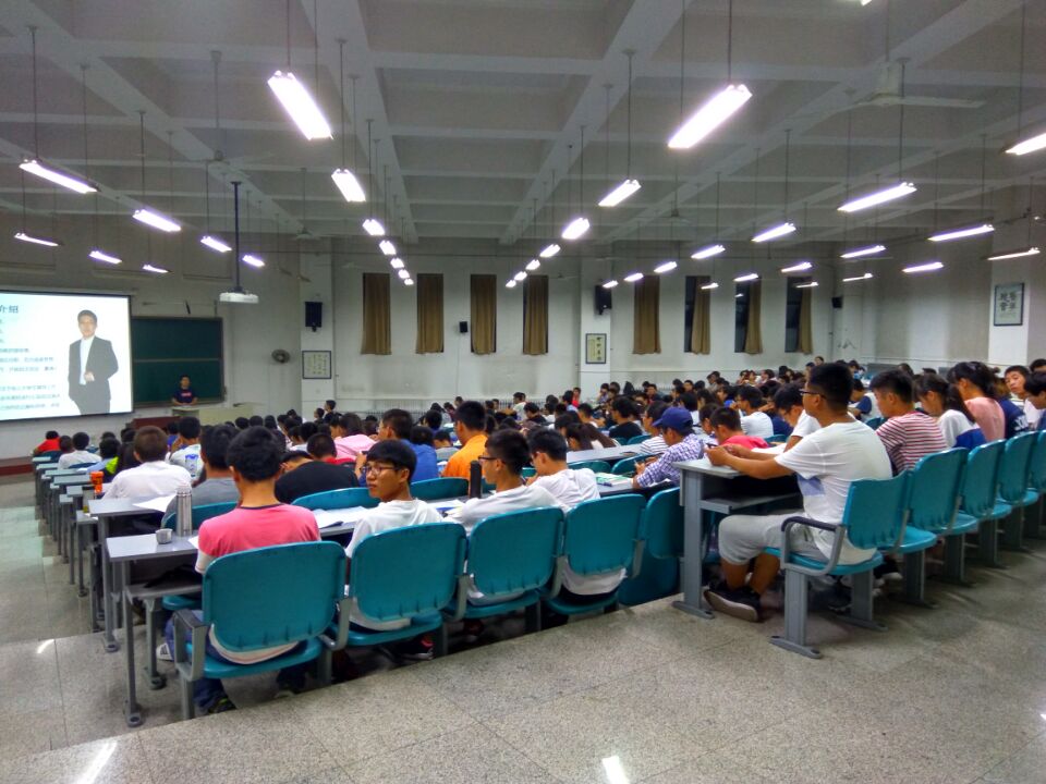 六点半左右,大一新生陆续来到教室就座,同学们热情高涨、兴致十足。讲座于七点正式开始,张震老师以一个小故事作为开端,引出本次讲座的内容。在之后两个小时的讲座中,他与同学们就老员工活进行了多方面的深入交流,从大一新生如何快速适应老员工活,到学校各级组织和社团的基本情况,他均悉心讲解。讲座临近尾声,同学们认真填写了调查问卷,表示从本次讲座活动中受益良多。九点,本次主题讲座圆满完成,大一新生有序散场。