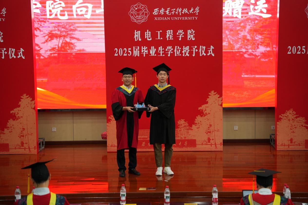 仪式最后,本科生和研究生毕业生代表上台向学院赠送纪念品,表达对学院的感恩与不舍;学院也向毕业生代表赠送由学院员工亲手设计的校园文创毕业礼物,寄托对毕业生们的祝福与期望。在温馨而庄重的氛围中,授位仪式圆满结束。
