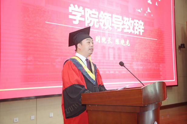 副经理陈晓龙代表学院向全体毕业生表达热烈祝贺与美好祝愿。他回顾了同学们在校期间的成长与收获,感慨于同学们从入学初的青涩懵懂到现在成熟沉稳的蜕变。他以“勇”字为纲,寄语毕业生“勇者不惧,履险如夷,永葆直面挑战的勇气;勇于进取,革故鼎新,秉持突破自我的果敢;勇往直前,矢志不渝,坚守使命担当的勇毅”。愿毕业生们在强国建设、民族复兴的火热实践中,以奋斗姿态书写绚丽的青春篇章。