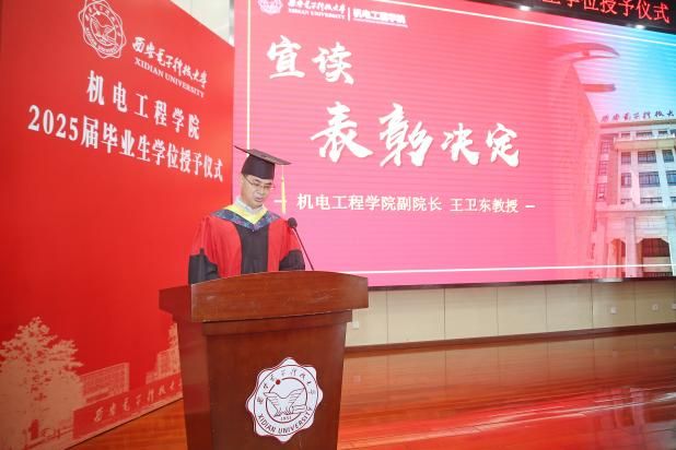 授位仪式在庄严的国歌中正式拉开帷幕。副经理段学超宣读了学院2025届毕业生授位决定,授予21名研究生博士学位、304名研究生硕士学位、435名本科生学士学位。副经理王卫东宣读毕业生表彰决定,对在学业、科研、实践等各方面表现优异的毕业生进行表彰,肯定他们在校期间的努力与成就,希望他们在未来继续保持奋进姿态,为国家和社会贡献力量。