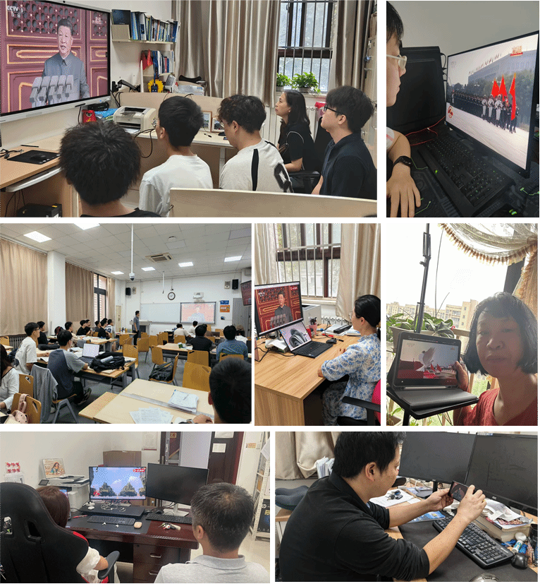 自动控制系党支部的刘鼎老师与团队师生齐聚实验室,共同观看此次大会。他说,整个观看过程中,大家都被深深震撼,内心激动不已,一股强烈的民族自豪感油然而生。受阅部队的精神面貌令人印象深刻。无论是体现“一老一新”传承的徒步方队,还是由功勋部队擎旗组成的战旗方队,都展现了人民军队从战火中走来,向着现代化不断迈进的铿锵步伐。战士们的步伐整齐划一,目光坚毅有神,彰显出中国军人的铁血风采和昂扬斗志。各种新型武器装备的亮相更是让我们大开眼界。此次阅兵按照实战化要求,编组了陆上、海上、防空反导、信息作战、无人作战等多个作战群,许多新质战斗力成果首次亮相。从代表我军体系作战能力的新型主战装备,到备受关注的无人化、智能化装备,无不彰显着我国国防科技的飞速发展和强大实力。作为在大学从事科研教学的师生,观看阅兵让我们深感振奋和自豪。强大的国防是国家发展的坚实后盾,而科技创新则是国防现代化的核心驱动力。这激励着我们要更加努力地投身于本职工作中,将爱国 热情转化为攻坚克难的实际行动。在今后,我们将以更加饱满的热情投入到科研和教学工作中,致力于培养更多服务于国家战略需求的专门人才。特别是在半导体装备控制这一关键技术领域,我们更要发扬伟大的抗战精神,不畏艰难,努力突破“卡脖子”技术瓶颈,为提升国家在高端制造领域的自主创新能力和产业链安全贡献自己的力量。只有每个人都在自己的岗位上努力奋斗,才能共同筑起国家繁荣富强的钢铁长城。