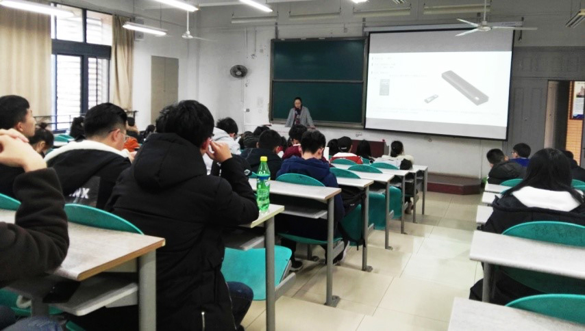 杨渲文员工报告完后,许社教老师就本次报告会的重点—创新进行了强调。围绕创新性工业设计人才培养,同学们首先要有创新意识,由要我创新转变为我要创新;其次,要掌握创新的途径,从技术、艺术、人文三个方面开展创新。技术方面,可从应用创新和集成创新入手,设计智能化或多功能化的工业产品。艺术方面,从造型形态变化、视觉美感方面进行创新。人文方面,从人的体验、关怀、民族或地域文化元素的抽象提取等开展创新;第三,要有创新实现的专业基本功,如手绘功力、电脑作图、结构设计等。作为创新锻炼,许老师鼓励同学们积极参加创新创业项目、自己研究申请专利。