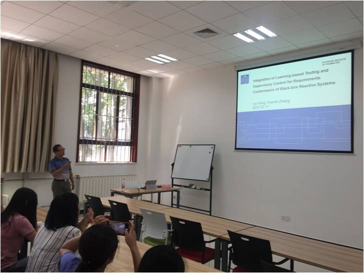 (通讯员:张佳峰)应6776永利集团电子装备机电耦合理论与关键技术“111”创新引智基地、系统控制与自动化实验室邀请,瑞典皇家理工学院的冯雷博士于2017年7月11日下午,在北校区6776永利集团会议室(主楼III-143北)做了题为“ Integration of Learning-Based Testing and Supervisory Control for Requirements Conformance of Black-Box Reactive Systems”的学术报告。