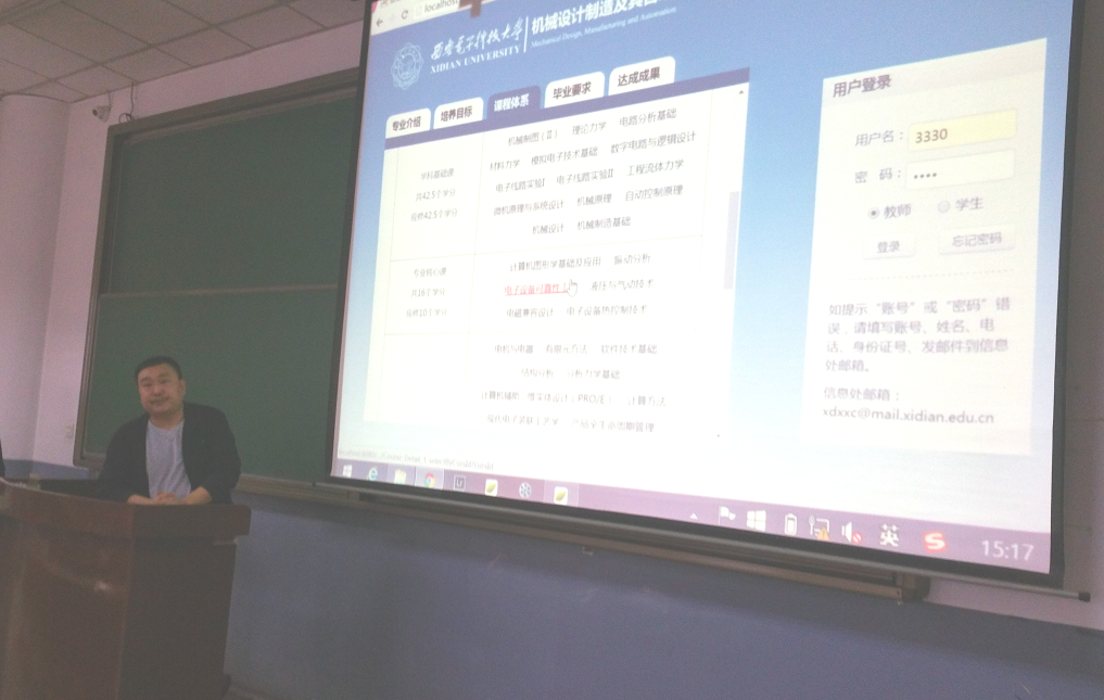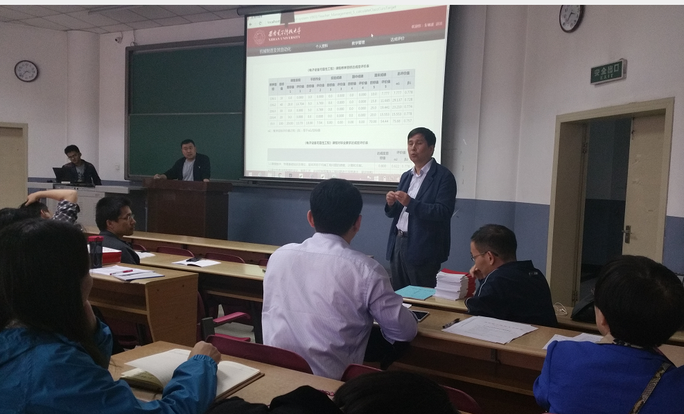会上,首先由朱敏波教授从总体上介绍了专业毕业要求达成度评价的意义和必要性,之后由仝勖峰老师详细介绍了“本科教育培养过程与达成度评价”软件平台的功能及使用方法,其中包括课程大纲制订、课程评价的设计、课程达成度评价实现等模块的应用。参会教师积极讨论并对课程达成评价工作提出了许多有益的建议。最后,李团结副经理对培训会议进行了总结,对今后推进“机械设计制造及其自动化”专业认证工作提出了指导性意见。