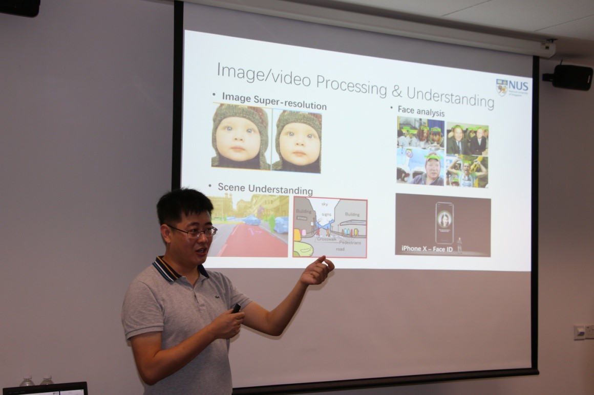 1月23日上午,在新加坡国立大学工程学院,新加坡国立大学电子与计算机工程系、机器学习与视觉实验室负责人冯佳时(Feng Jiashi)教授向同学们做了“Deep Learning for Visual Understanding”的报告,讲解了深度学习及计算机视觉的原理和最新研究进展,详细讲解了两者的工作原理和应用现状,重点讲解了深度学习技术在人脸识别、深度图像超分辨率(Deep Image Super-Resolution)、图像去雨滴、图像去雾、图像去雾霾、超限人脸识别、人脸去遮挡与人脸年龄识别等方面的研究成果,并对其研究成果进行了演示,这些神奇的成果深深地吸引了同学们的好奇心,启迪了大家对科学研究的兴趣。