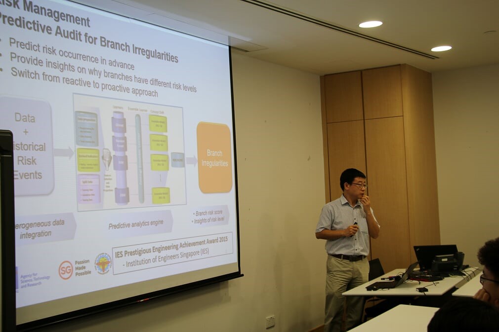 1月23日下午,在新加坡科技研究局,来自Neph Tech的王圣啸博士向同学们做了题为“Provider of a User-Centric Blood Vessel Surveillance Programme for Dialysis Centres”的报告,重点了他们公司自主研发的一款基于人工智能技术开发的,能够有效监测血管壁厚度的产品原理及其开发经验分享,使得同学们了解了人工智能产品开发过程中的艰辛与喜悦。来自中新智擎的Huang Wei Bo博士向同学们讲述了机器人产业的应用现状和技术架构,分享了自己在企业创新过程中的经验。“智能机器人的最后,依旧是取决于AI技术的发展。”黄巍伟博士总结更加激发了同学们对AI技术的学习兴趣。
