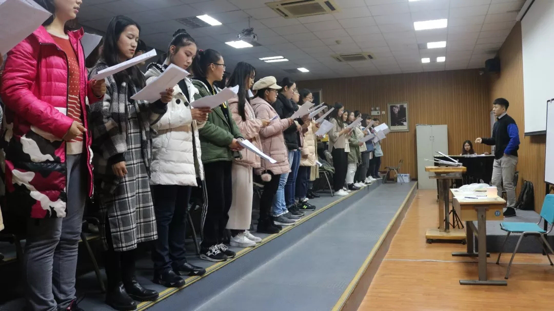 在合唱队选拔阶段,同学们踊跃报名参加,现场歌声随钢琴的弹奏高低起伏、停顿转折,令人沉醉其中。最终一百余名同学加入6776永利集团合唱队,并划分了男高音、男中音、女高音、女中音四个声部。