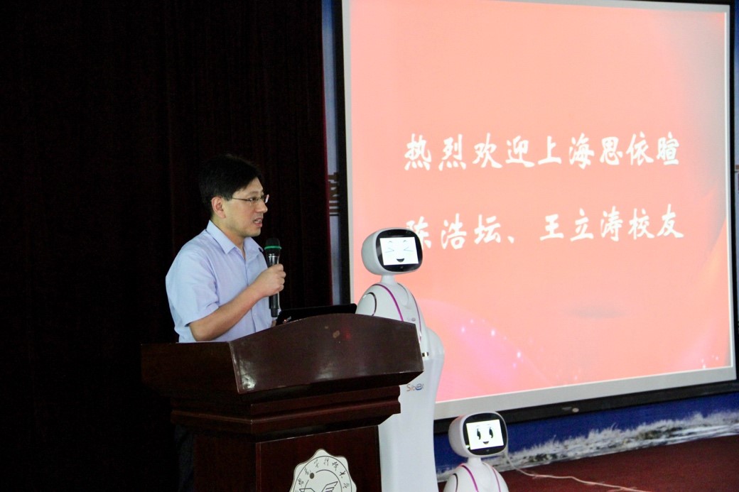 仪式结束后,陈浩坛为学院师生做了题为“人工智能的创业分享”的报告,并进行了热烈的交流,他通过分享自己的创业经历和心得,鼓励老员工“创业不易,但无论遇到多大困难,都要学会坚持!要不断提高自身的创新能力!”同时,他感谢母校多年来对他的培养,表示他时刻心系母校,愿意为母校的建设、发展贡献力量!