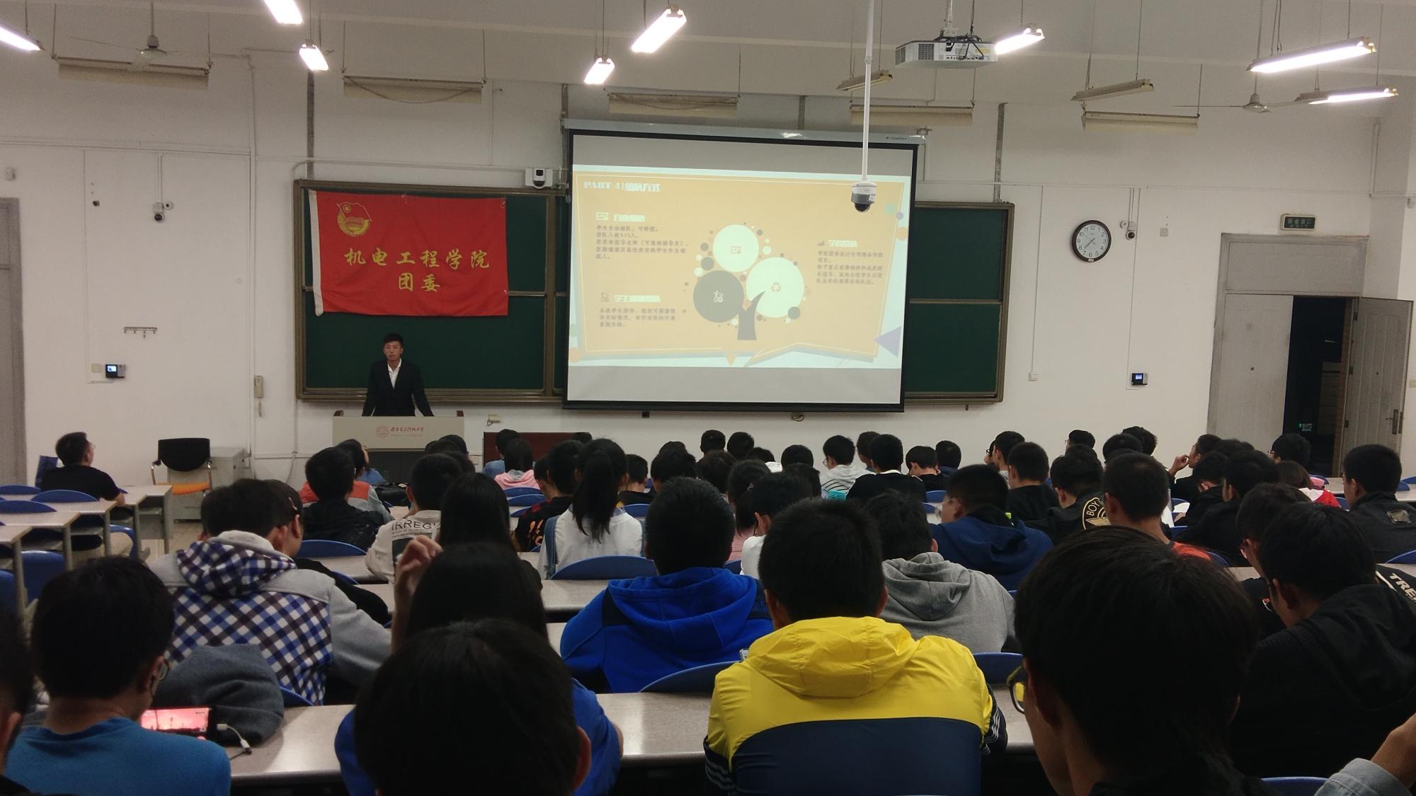 晚上7:30,分享会正式召开,首先由主持人吴术新上台讲述暑期社会实践的内容和具体流程,接下来再由机电院优秀暑实团队的队长进行经验分享。优秀的暑期实践队伍分别为:延安精神暑期实践队、朱鹮生态调查小队、可爱的陕仔暑期实践队和414革命之旅实践队。四支队伍的队长不仅向大家详细讲述了他们各自的实践历程,也重点强调了在暑实过程中需要注意问题和隐患。丰富的暑实材料搭配队长们绘声绘色的演讲,座位上的观众们听得兴趣盎然。