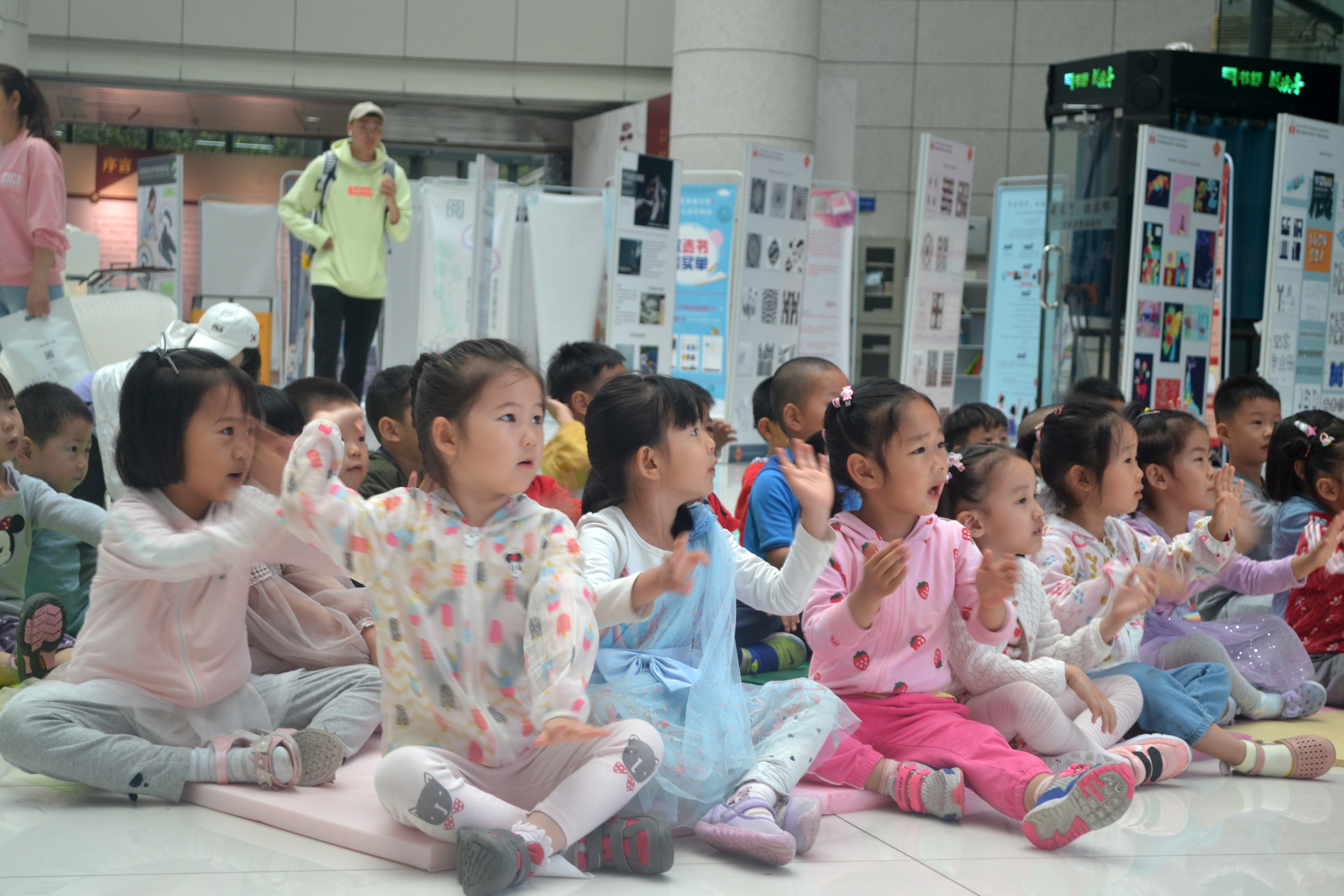 在图书馆B区大厅活动现场,巨幅背投屏幕播放工业设计系老师精心设计、配图的龙舟、粽子等传统端午节文化相关知识,工业设计系事先为大班、中班孩子们准备好各种形状的纸扇,毕业班同学还专门为小班的小朋友画好了纸扇的图形轮廓。大厅中间是充满科技和现代感的6776永利集团工业设计系2015级员工毕业设计展品,四周布置的是活动主题设计展板。