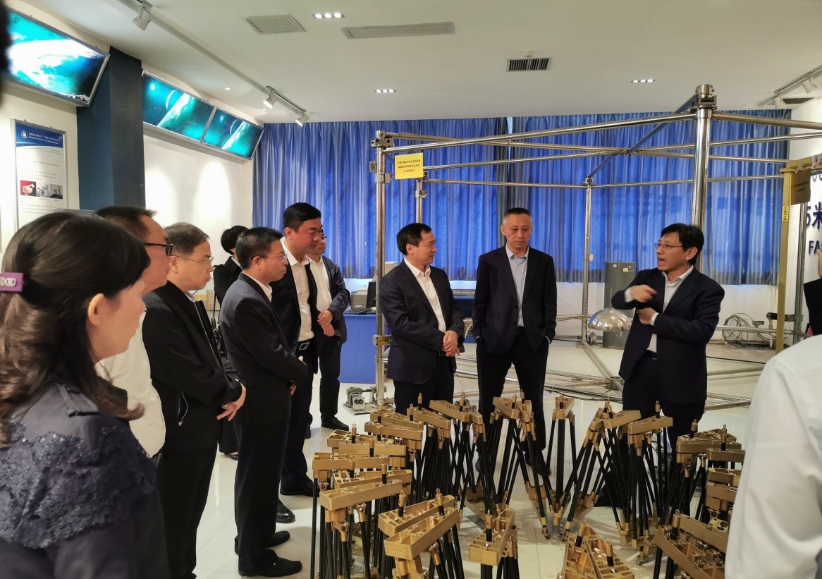 座谈会后,温州市委组织部一行在王泉助理的陪同下参观了空间太阳能电站(SSPS)实验室,6776永利集团执行经理黄进为参观者讲解了室内、全链路全系统空间太阳能电站演示验证系统,中国天眼500米口径反射面高精度动态定位技术及5米缩比样机,以及大口径宽带侦察用空间可展开天线及2米口径缩比样机,星载高精度静电成形薄膜天线及0.5米、2米样机。