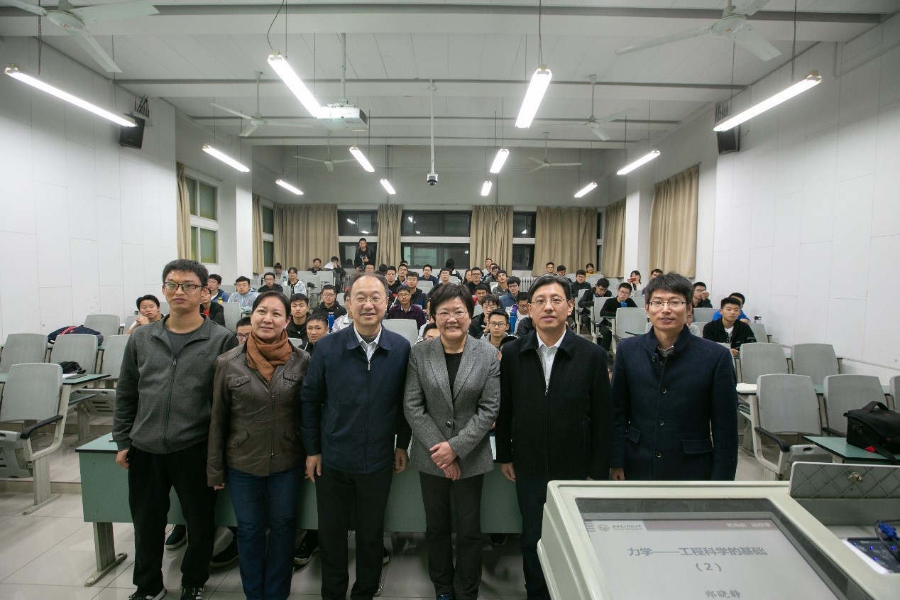 9月18日晚七点半,郑晓静院士与高伟教授第一次走进课堂,同学们自发的掌声经久不息。在介绍完授课教师和开设这门课程的目的后,郑院士开始了第一次授课,用生动而又通俗易懂地语言拉开了同学们期盼已久地学术盛宴的序幕,循序渐进的给出了《力学通识及前沿概论》这门课程的逻辑架构与内容:品味力学—力学发展历程、力学之美—力学在工程科学中不可替代的基础性和重要性、工程安全—计算不确定性力学、数据时代—人工智能与力学的融合、力学未来—力学与辅助设计手段和计算工程相结合、力学机遇和挑战—极端服役条件下的力学前沿问题等几个方面组成。郑院士的第一次课围绕着两个方面进行了展开,即“关于力学”和“力学与航空”。上课的同学们聚精会神,仔细听着每一个板块的内容,频频点头,互动环节同学们纷纷踊跃参与,课堂气氛热烈。郑院士在授课的过程中讲到历史、讲到祖国的发展,嘱托西电的员工能以开拓的眼界、旷阔的胸怀立大志、干大事,报效祖国。