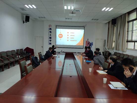 梁玮书记介绍了双方合作的背景,黄进经理和李团结副经理介绍了机电院现有的研究基础和机器人专业发展情况并展示了自主研发的特种机器人“西电蜈蚣”实验场景。
