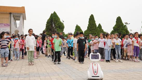 在龙池镇中心小学的教学楼前,阳光明媚,笑语盈盈,电气工程系教师为孩子们捐赠一台智能机器人——西电小暄。员工代表为孩子们演示了小暄的本领,孩子们的脸上充满了惊喜和好奇,和着“小暄”的歌声一起高唱《少年》。孩子们感受到了科技力量的强大,激发了对科学无穷的探索欲望,“小暄”也将带着电气工程系教师们的关爱陪伴孩子们成长,激励他们奋发踔厉,精进不休。