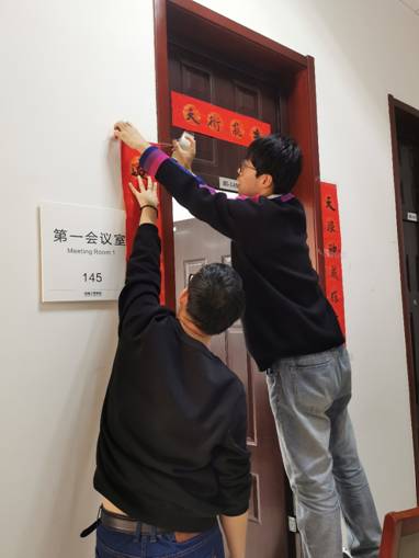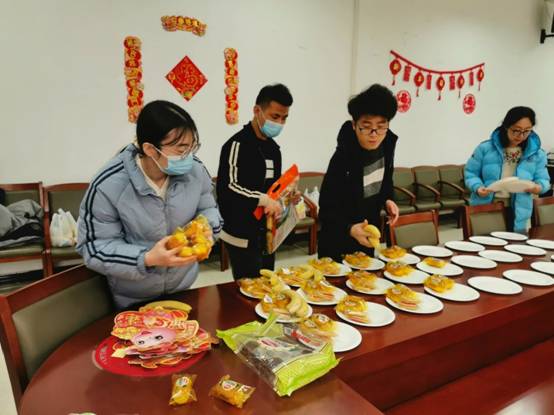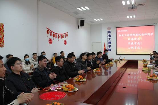 因为疫情原因,机电院有44位同学无法回家,留在学校过春节。为了让同学们在学校也能感受到过节的温暖,机电院组织了热闹的茶话会。会前同学们精心布置会场,让会议室焕然一新。
