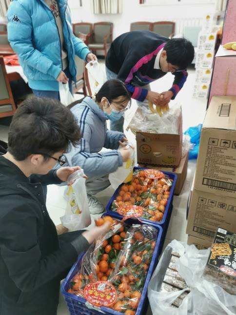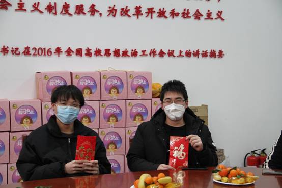 茶话会后大家合影留念,学院领导为全体留校的同学送上关怀,发放了春节慰问品。