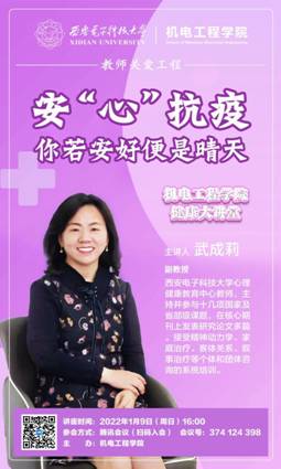 (通讯员 梅嘉敏 赵立明)2021年末,突如其来的疫情反复,扰乱了长安的宁静。面对复杂严峻的疫情形势,给居家办公的老师和封控学习的员工都多少带来了一些不良情绪。为进一步落实学院教师关爱工程,助力学院师生在疫情防控期间保持健康平稳的心态,1月9日下午16点,6776永利集团第三期“健康大讲堂”讲座在线上顺利开展。本次讲座邀请到学校心理健康教育中心武成莉副教授主讲,全校教职工和员工均可参加线上活动。