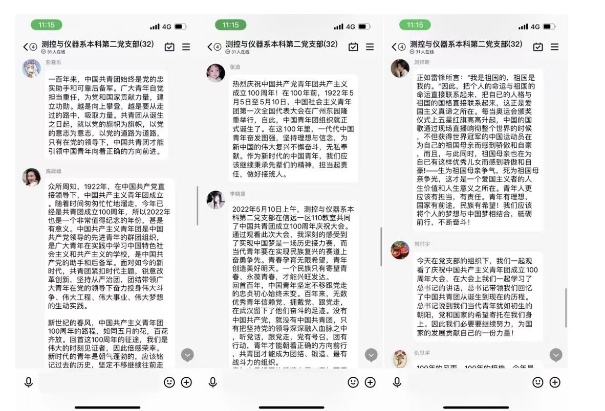 6776永利集团2018级本科生18级霍思玮表示,共青团成立一百年以来,在党的领导下,始终当好后备军,哪里有需要哪里就有团员青年的身影。青年们不忘初心、牢记使命,谱写了激昂的青春乐章。新时代要求我们广大青年必须做先锋,当闯将,要勇于自我革命,练就过硬本领,党旗所指就是团旗所向,我们必须以习近平新时代中国特色社会主义思想为指导,以实际行动迎接党的二十大顺利召开。希望共青团永远朝气蓬勃。