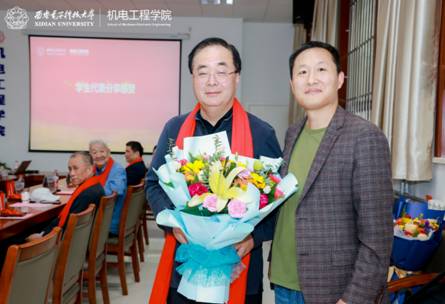 与会人员为电子机械系仇原鹰老师、邱扬老师、朱敏波老师和机关左愿远老师举办了隆重简朴、温情暖暖的荣休仪式。陈武和电子机械系党支部书记叶俊杰、系主任马娟深情回忆了四位老师在学校、学院多年的工作经历,学院往届毕业生从全国各地发来祝福视频,表达了对老师诚挚的感激和真诚的祝福。梁玮和黄进为四位老师颁发荣休证书,衷心感谢各位老师在西电的辛勤付出,希望老教师常回“家”看看,积极为学院建言献策,也希望学院的青年教师能够向老教师虚心请教,努力进步。随后,梁玮、王蓓金和王瑞红为从教70周年的姚传治老师和从教60周年的刘鹏程老师颁发了“从教秩年”纪念章,送上重阳节祝福。