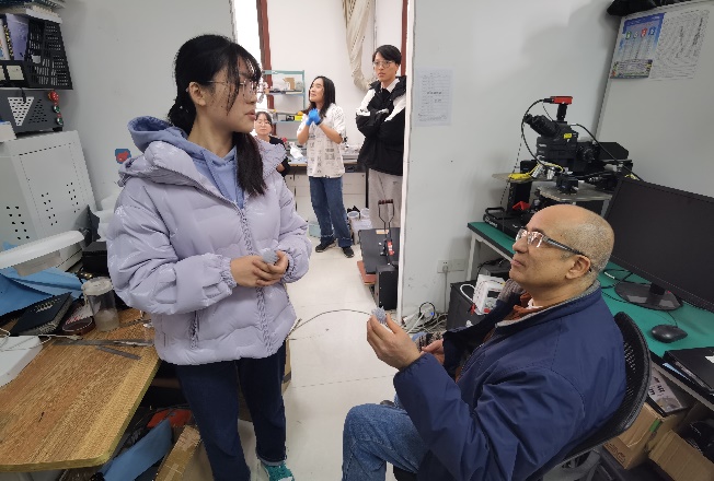 来访期间,Basaran教授参观了学院“微纳机电系统研究中心”实验室,与课题组研究生展开了亲切友好的讨论。Basaran教授详细了解了每位员工的研究方向,为同学们耐心解答了科研上遇到的困惑,同时鼓励大家能够继续深造,在电子封装领域开展更加深入的研究工作。