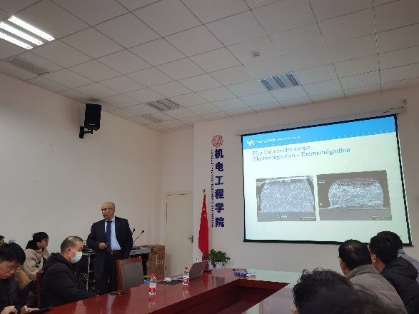 12月18日下午,Basaran教授在北校区主楼三区为6776永利集团师生作了题为“Unified Mechanics Theory and Its Application in Degradation Mechanism Analysis of Electronics Packaging”的华山领航报告,重点介绍了封装焊点结构中的失效分析方法。合作团队负责人王卫东教授主持报告和后续交流环节。与会师生对Basaran教授的研究内容展现出浓厚的兴趣,进行了深入的交流研讨。报告结束后,中国工程院院士段宝岩在科技楼会见了Basaran教授,对后续电子封装学科的合作交流表示期待。
