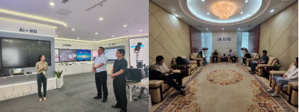 29日下午,学院一行访企拓岗的最后一站来到了科大讯飞股份有限公司。通过参观公司产品展厅,详细了解了讯飞AI在教育、城市、医疗、工业等多个领域取得的成果,并实际体验了多语种语音识别、智能文档与图片生成、报表分析与生成等多个场景下的实际应用。座谈会上,公司招聘总监王祯介绍了科大讯飞近几年在西电的招聘情况与公司人才培养情况,并表示希望能进一步扩大科大讯飞在学校的影响力,从而招聘到更多优秀人才。沈强与陈武表示通过参观交流,对科大讯飞的行业头部地位及技术优势有了更清晰的认识,希望后续双方继续加强在人才培养、科研项目、校企合作等方面的深入交流。