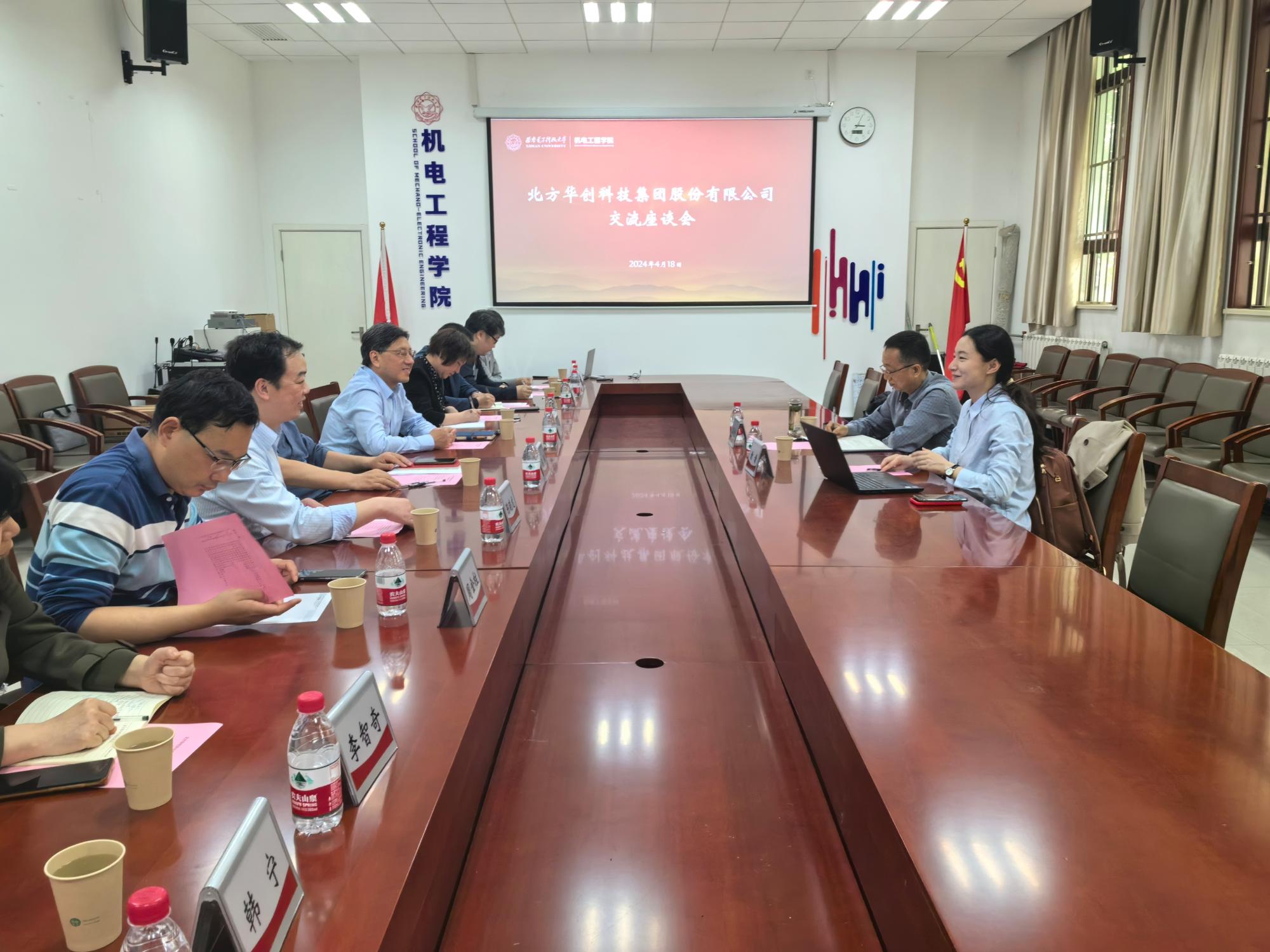 (通讯员 王飞)4月18日下午,北方华创科技集团股份有限公司人力资源管理中心总监谢谦、西安子公司副总经理王跃利来学院调研交流,公司党委书记梁玮、执行经理黄进、副经理陈晓龙、相关各系所主任及教师出席。座谈会在北校区主楼三区145北会议室举行,会议由陈晓龙主持。