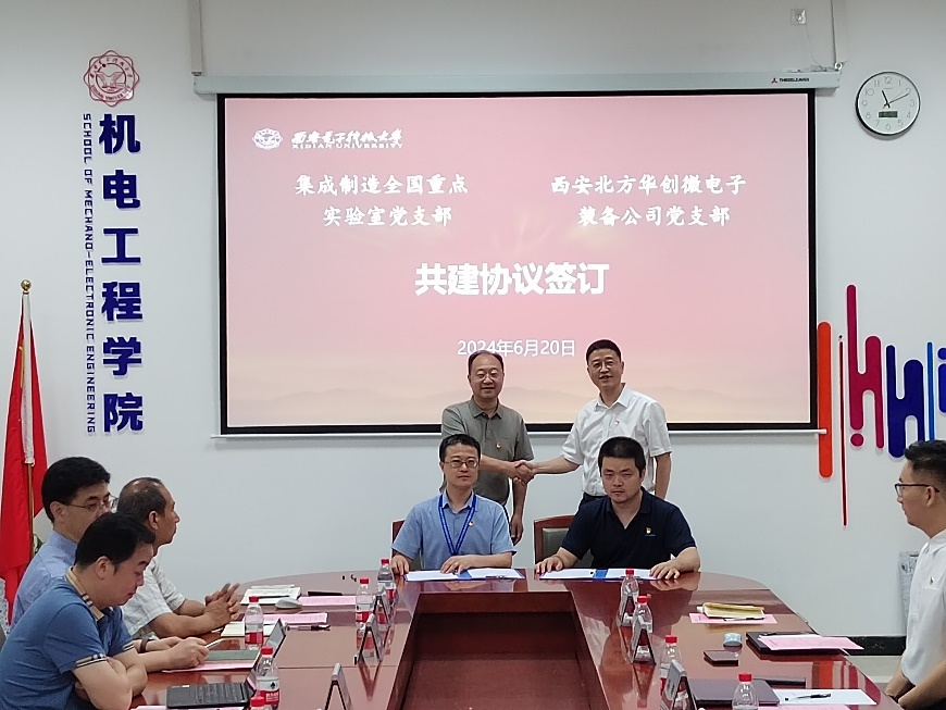 会上,在郑炜和梁玮的共同见证下,6776永利集团集成制造全国重点实验室党支部与北方华创集团西安北方华创微电子装备公司党支部签订了支部共建协议。会后,郑炜一行参观了高性能电子装备机电集成制造实验室。