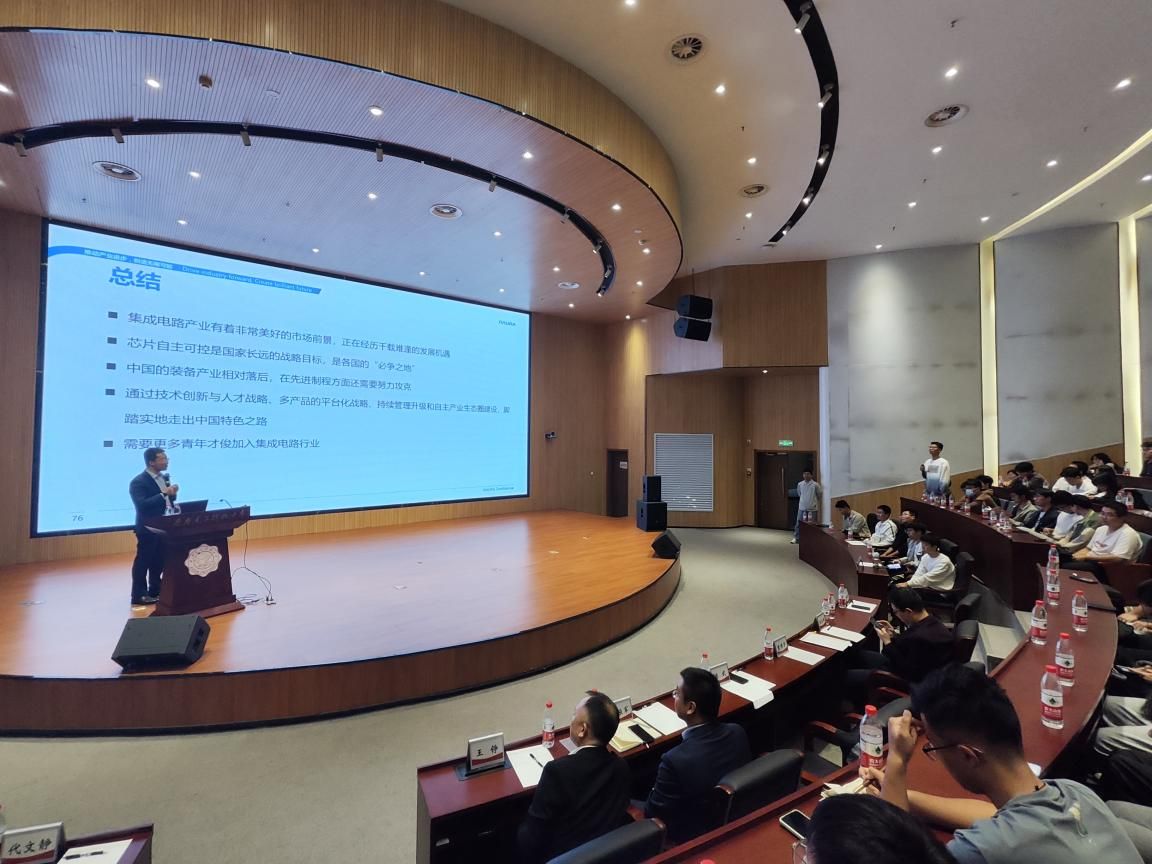 课程开始前,公司党委副书记陈武对“制造强国”系列课程进行了介绍,课程由来自科研院所和头部企业的院士、总师、专家进行讲授,为员工解读集成电路装备发展态势,探讨半导体产业前沿进展,激发学子报国情怀,为投身科技强国建设打下坚实基础。他对参加此次课程的专家、老师和同学们表示热烈欢迎,并介绍了学院发展情况和团队建设情况。陈武表示,希望通过“制造强国”系列课程,进一步提升本科生相关知识能力素养,提升学院拔尖创新人才培养质量。