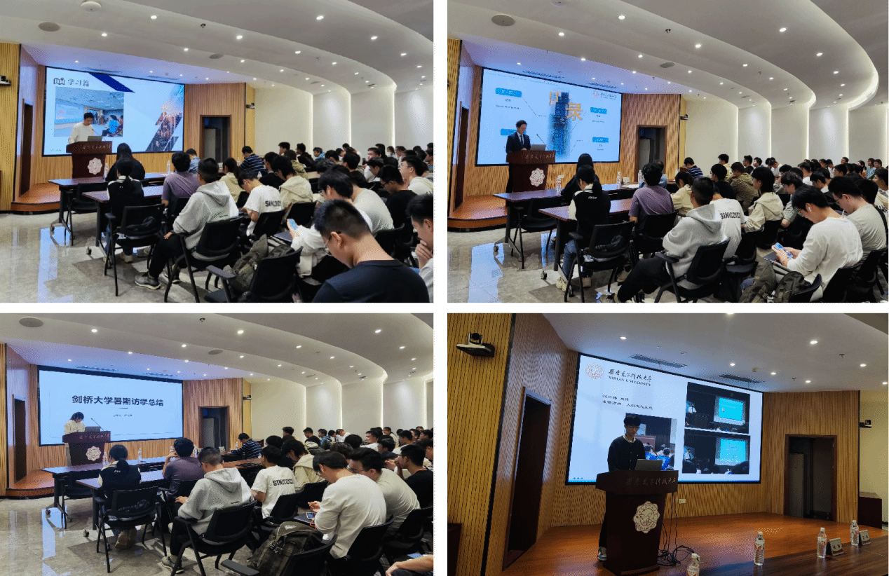 接下来四位参与暑期国际交流的员工代表分享了他们的访学体验。陈硕从学习和文化两方面讲述他在马来西亚拉曼大学夏令营的经历,包括在研究所参观、小组交流、反转课堂一系列活动;李畇帛从所学、所见、所感来讲述新加坡南洋理工大学的学习之旅,不仅有对科研领域的更全面认识,还充分体验了当地的美景美食;施承均讲述他在日本早稻田大学的交流经历,讲述遇到的文化碰撞、饮食差异等;符淑茗分享她英国剑桥大学的交流经历,参观了当地著名建筑并分享自己的心得感受。四位同学的国际交流经历各不相同,但都表示收获很多,都体会到了不同国家在文化、饮食、政治等方面的差异,体会到了自己作为老员工的身份责任,并在访学过程中充分激发了自身的科研热情。