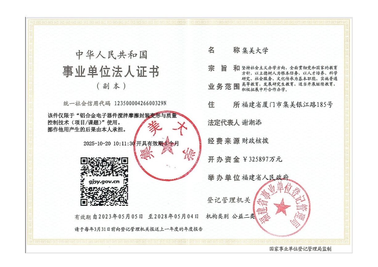 按照《yl6776永利集团官网科研协作项目管理办法(试行)》文件规定,为加强学校科研协作项目的管理,确保高性能集成制造实验室电子装备特种制造技术研究的顺利进行。集美大学与项目负责人李楠将开展科研合作,现将合作相关事项公示如下:
