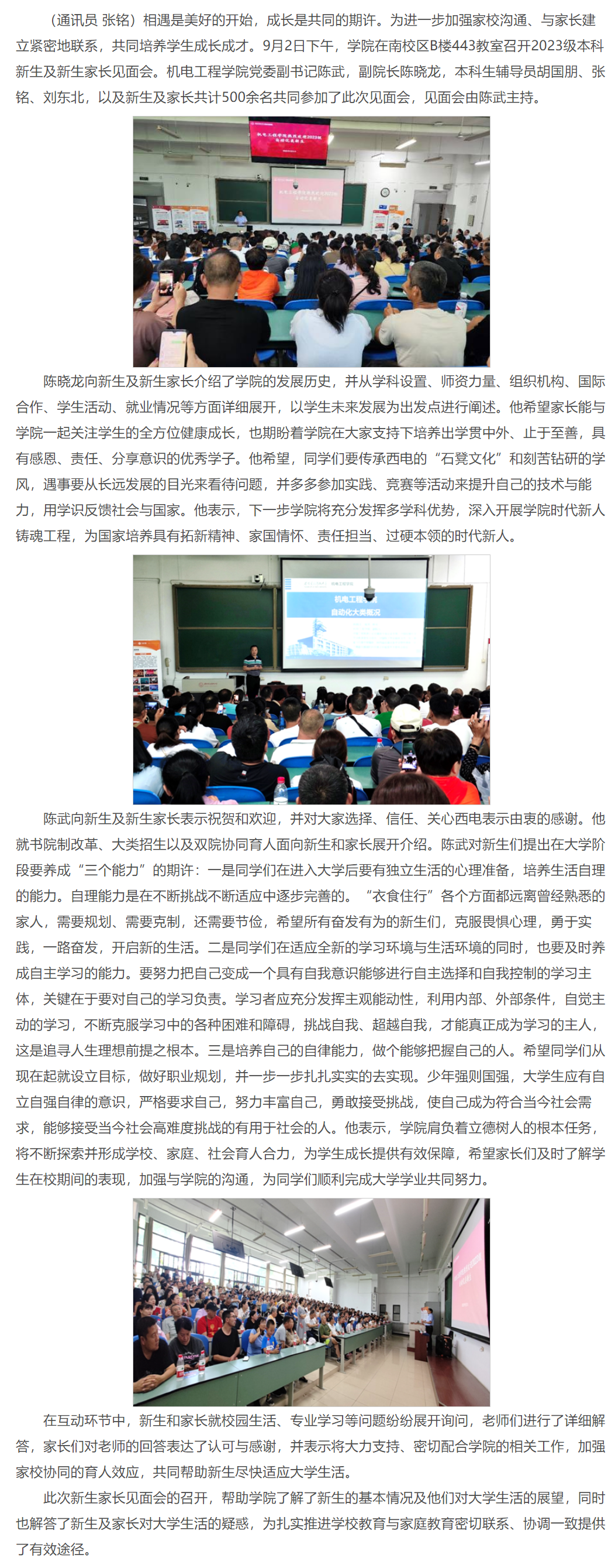 6776永利集团顺利召开2023级本科新生及新生家长见面会