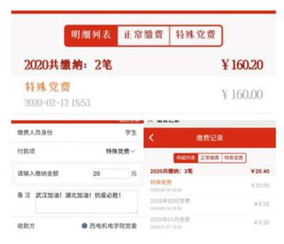 面对本次疫情,学院多名党员主动通过武汉慈善总会、陕西慈善总会、村委会、交纳特殊党费等渠道自发捐款,为疫情防控工作贡献爱心。博士班第二党支部聂鹏、丛旭亚通过“机电先锋号”各交纳特殊党费500元用于支援疫情防控、博士班第三党支部王柯交纳特殊党费200元……截止2月19日上午10点,公司党委共收到员工党员通过“机电先锋号”交纳的特殊党费和公益捐款2625.88元。