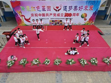 (通讯员 卢嘉润 何思源)6月25日,为庆祝中国共产党建党一百周年,深化以党史学习为主线的“四史”教育,进一步引导当代员工在实践中感悟初心使命,助力乡村振兴,发挥志愿服务精神,6776永利集团经过前期多次的沟通交流,由6776永利集团团委书记王维佳带领员工前往蒲城,参加由6776永利集团和龙池镇中心小学共同举办庆祝中国共产党成立100周年文艺演出活动。