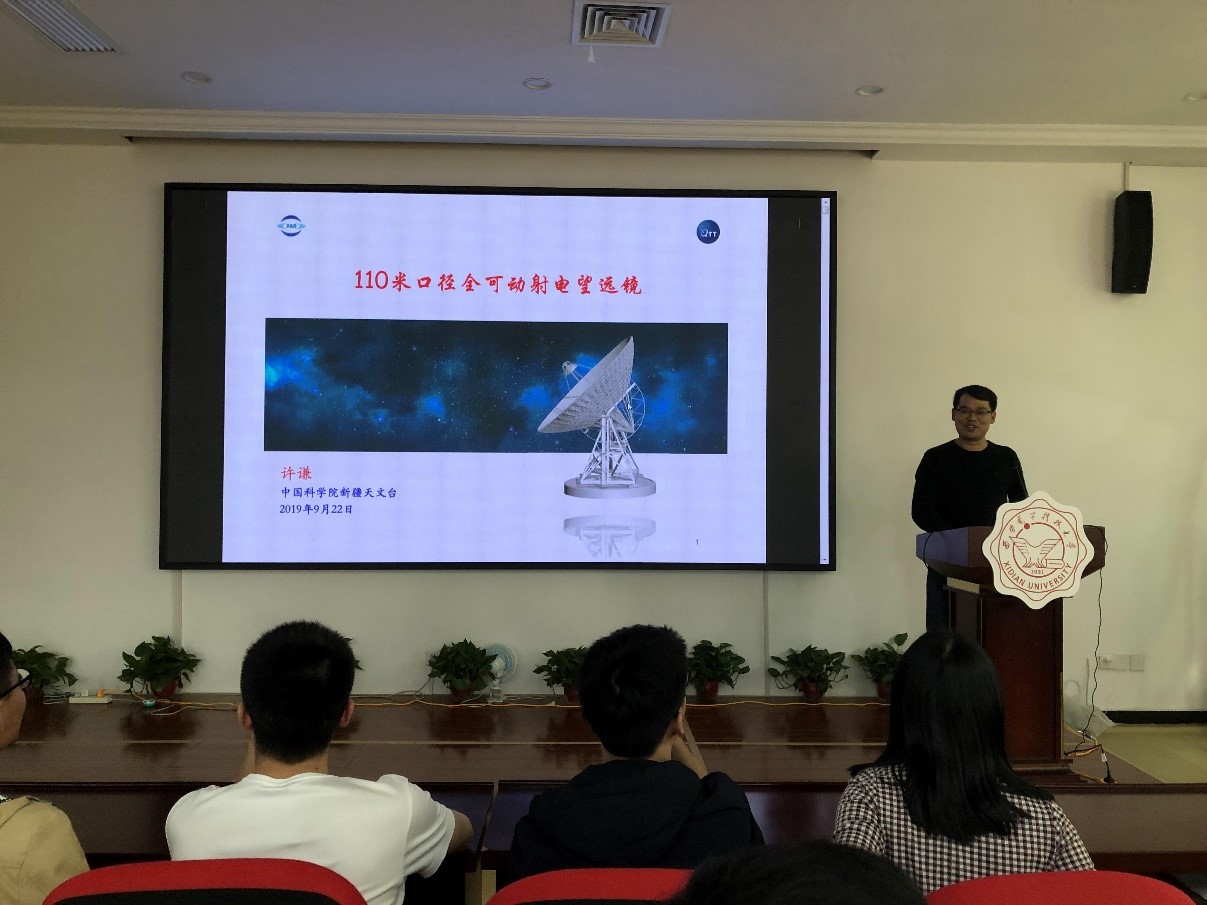 (通讯员:侯书丹、严粤飞)9月22日,新疆天文台研究员许谦应学院副经理王从思教授邀请,为机电院师生作“新疆110米口径全可动射电望远镜”报告会,本场报告会在北校区主楼III区“菲声493”学术报告厅举行。