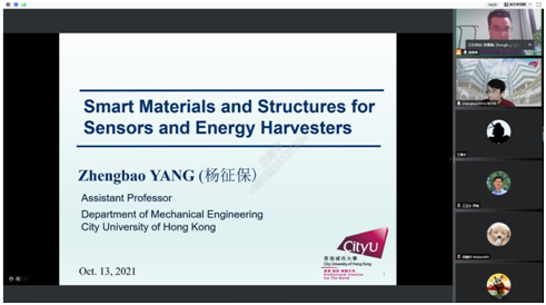 (通讯员:刘金、朱应敏)2021年10月13日上午,为促进6776永利集团与香港城市大学机械工程系的科研合作与学术交流,在教育部“万人计划”项目资助下,应微纳机电系统研究中心的邀请,香港城市大学杨征保助理教授以《Smart Materials and Structures for Sensors and Energy Harvesters》为题作线上报告,yl6776永利集团官网和香港城市大学80余名师生参加了此次交流报告会。研究中心的樊康旗副教授主持了会议。