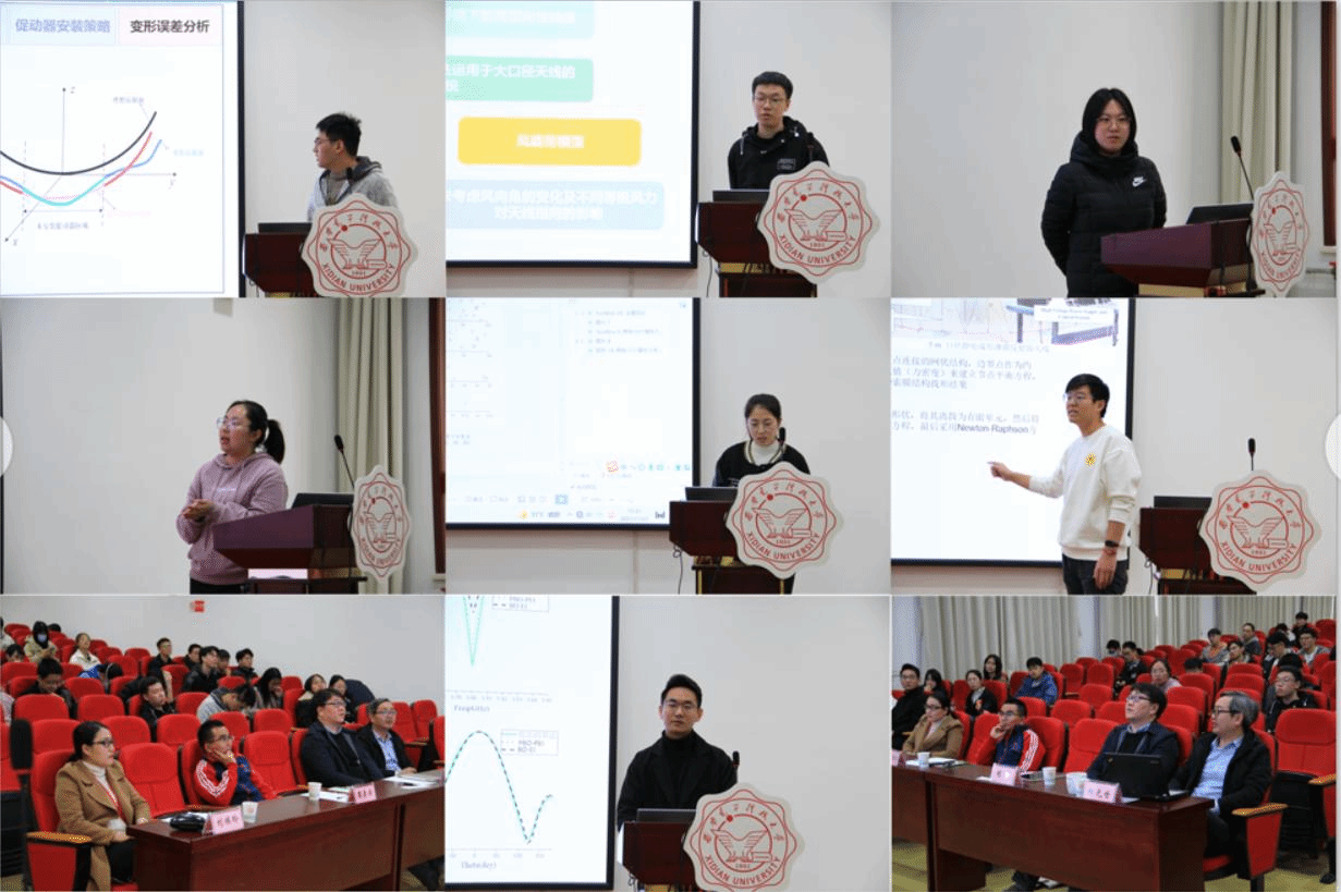 本次参加答辩的同学主要从论文背景、论文内容及论文总结三方面介绍自己的工作,涉及到了天线、控制、博弈、测量、算法设计等领域,参赛选手的表述清晰流畅,对自己的研究成果进行了充分的阐述。评委老师从创新性、独创性和实用性等方面进行了提问,并对选手进行打分。