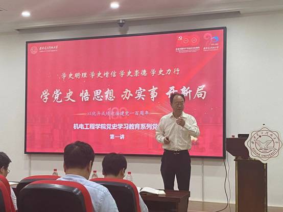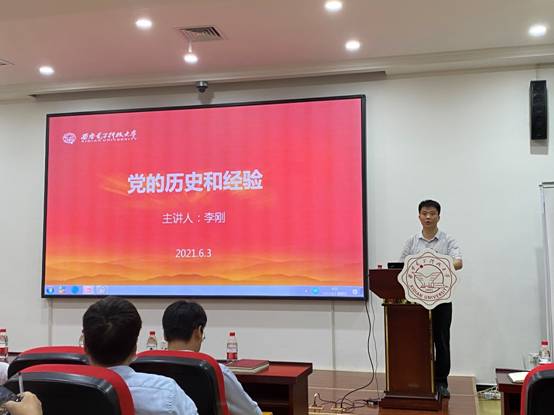 随后,梁玮以《从建党百年辉煌史中---感悟党的集中统一领导和“两个维护”的重要意义》为题进行了讲授,同时这也是公司党政班子成员讲系列党课的首讲。他分享了自己党史学习的心得,并指出希望学院师生可以将党史学习教育与日常工作、学习相融合,主动将学习教育成果转化为攻坚克难、干事创业的强大动力,真正做到学以致用,推动党史学习教育往深处走。