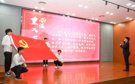 “我志愿加入中国共产党,拥护党的纲领,遵守党的章程……”,活动的最后,在王贞理同学的带领下,全体参会人员共同重温入党誓词。以铮铮誓言,再言入党初心;以嘹亮之声,表明报国之志。让毕业生党员铭记共产党员的身份,唤醒内心的责任感和使命感;让毕业生党员兑现共产党员的承诺,以实际行动报效社会报效祖国。